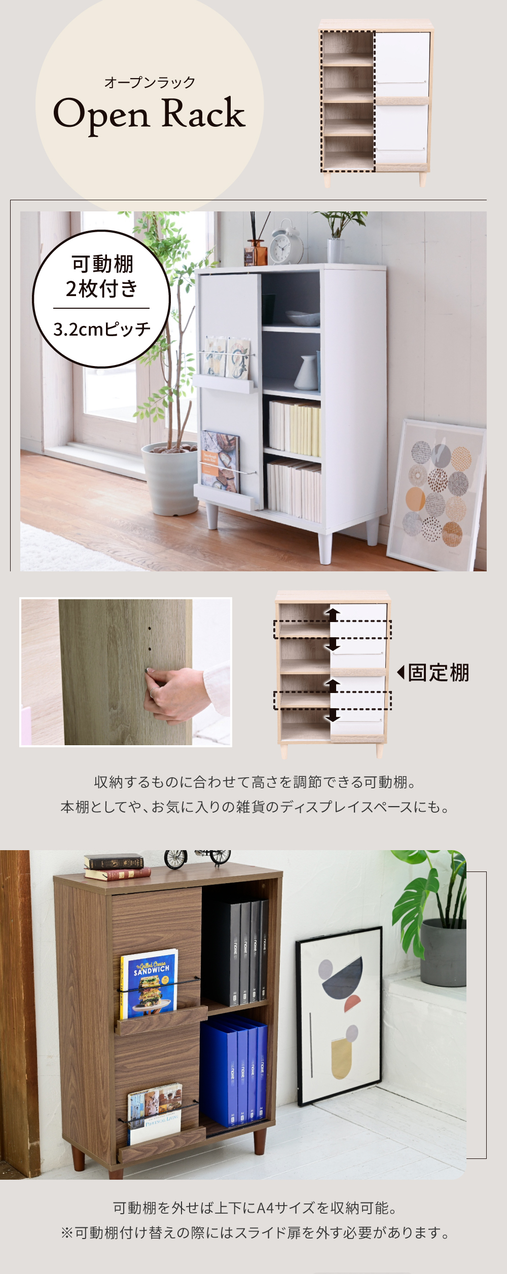 収納家具選びに迷っているなら、ぜひこのユニークで魅力的な「脚付きスライドディスプレイラック」を、候補に入れてみてくださいね!