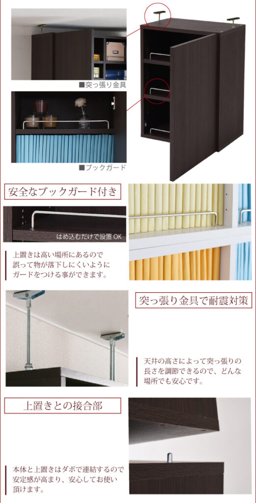 - (製品によっては)地震対策にも貢献:しっかりと閉まる扉であれば、地震の揺れによる収納物の飛び出しを防ぐ効果も期待できます。特に背の高い本棚の場合は、安全面でも重要なポイントとなります。