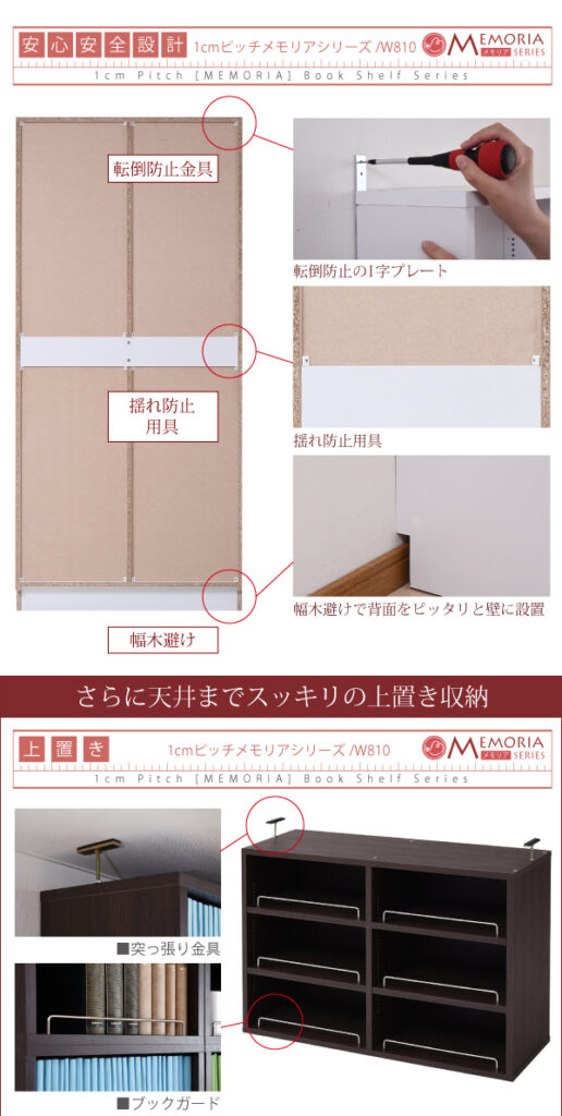 当商品は、転倒防止金具や横揺れ防止用具を取り付けていますので、万が一の時でも安心です。